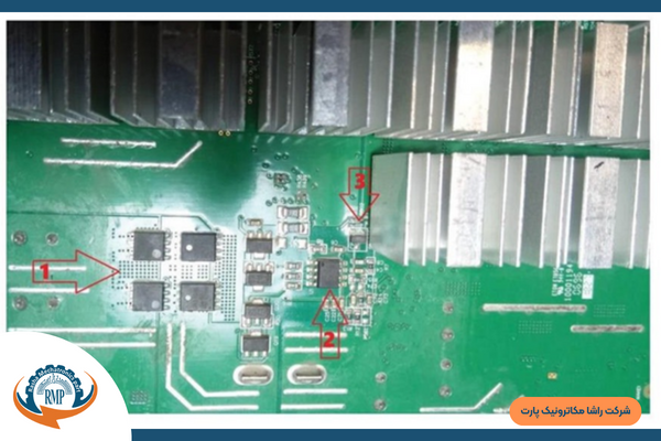 معمولا بیشترین مشکل به تغذیه و قطعات اصلی یعنی ماسفتها (شمارهی 1 ) رگولاتور اصلی (شمارهی 2) و در مواردی درایور (شمارهی ۳) برمیگردد که با تست چک کردن و تعویض آنها مشکل حل میشود.