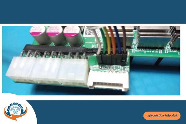 در تعمیر هش برد S9j اطلاعاتی که پردازش کرده را به کنترل برد انتقال میدهد. برای انجام پردازش احتیاج به ولتاژ 12 ولت دارد که از طریق پاور دریافت میکنند که این انتقال توسط کانکتور تغذیه به هش برد انجام میشود.