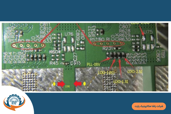 برای اینکه از سالم بودن رگولاتورها اطمینان حاصل کنید در کنار هر رگولاتور دو تست پوینت ۱.۸ ولت و ۰.۸ ولت وجود دارد که میبایست با مولتی متر چک ولت شود