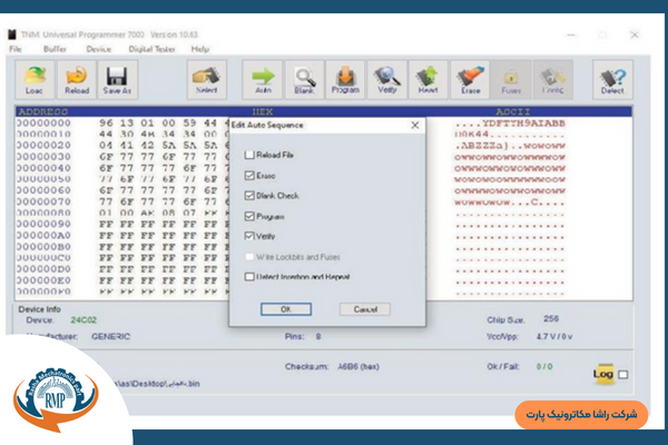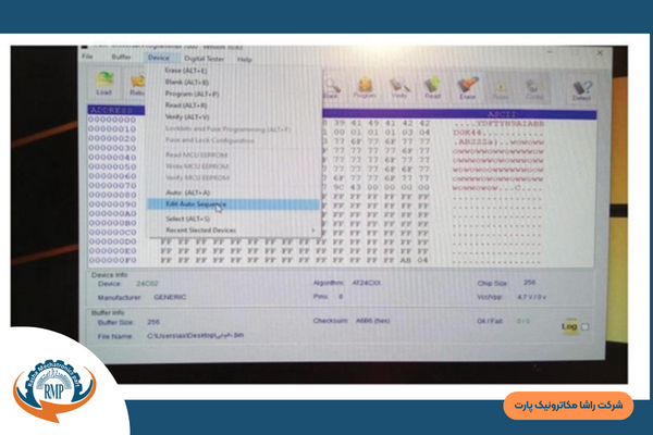 سپس هش برد S9j مورد نظر را متصل کرده و برای پروگرم کردن ابتدا گزینهی Device را انتخاب کنید پنجرهی باز شده گزینهی Edit auto Sequence را انتخاب کنید همانند تصویر زیر