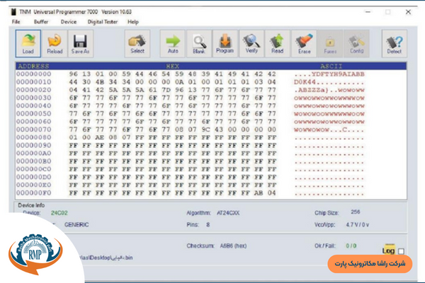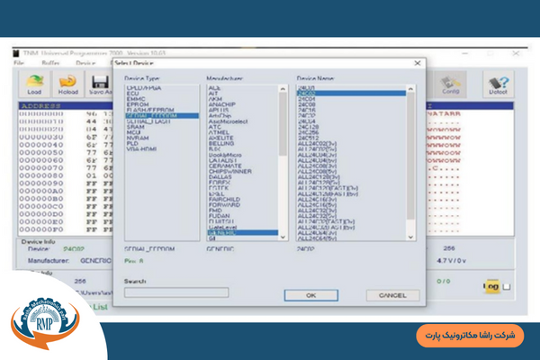 همانطور که مشاهده میکنید در قسمت Search با وارد کردن پارت نامبر قطعه مورد نظر آن را انتخاب کرده سپس گزینهی load را انتخاب کنید و فایلی که از هش برد سالم قبلا read گرفتهاید را انتخاب کنید