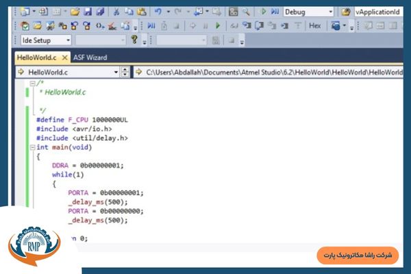 این برنامهها که به صرت متنی توسط برنامهنویس در محیط IED مخصوص میکروکنترلر نوشته می شود توسط کامپایلر به کد هگز و در نهایت به صورت زبان ماشین یعنی صفر و یک روی بخش حافظه میکروکنتلر قرار میگیرد و درواقع این توالی صفر و یک معنا دار برای میکروکنترلر عملکرد واحد های مختلف آن را مشخص میسازد.