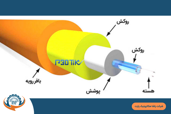 هسته : بخش مرکزی فیبر نوری که محل عبور پالس های نوری است.