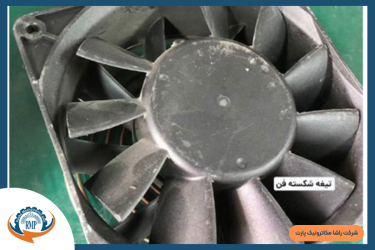 آسیب فیزیکی: در تصویر زیر میبینید که پرههای فن شکسته شده اند. در این حالت خنک کننده ماینر دچار آسیب فیزیکی شده و باید تعویض شود. اگر تیغهی فن آسیب ببیند، در هنگام کار کردن باعث لرزش دستگاه ماینر شده و در طولانی مدت به دستگاه آسیب میرساند.